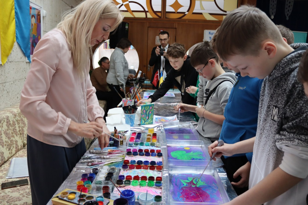 У майстер-класі взяли участь близько 70 дітей та дорослих, які з великим натхненням експериментували з фарбами, спостерігали, як кольори плавно розтікаються водною поверхнею, і створювали власні неповторні композиції. Атмосферу заходу доповнювала турецька музика, що допомагала учасникам глибше зануритися в культурну традицію та відчути справжню магію мистецтва.