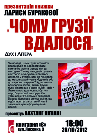 Книгарня «Є» та видавництво «Дух і Літера» запрошують Вас на презентацію книги Лариси Буракової «Чому Грузії вдалося»