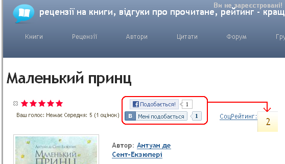 Як це працює? Зазвичай сайти та блоги мають можливість лише відображати кількість ‘лайків’ і не зберігають цю інформацію для аналізу чи сортування. Рейтинг findbook.com.ua кожну добу оновлює статистику уподобань сторінок сервісу (переліку книг) користувачів Вконтакті та Facebook. В результаті уже маємо сформований рейтинг із 162 книг та 418 голосів, які віддали користувачі Вконтакті та Facebook улюбленим книгам - http://findbook.com.ua/uk/top_knigi