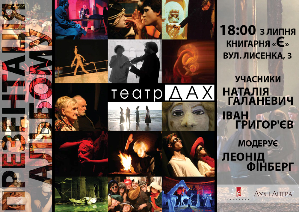 Книгарня "Є" та видавництво "Дух і Літера" запрошують на презентацію альбому «Театр "ДАХ"», що відбудеться 3 липня, о 18:00 за адресою: вул. Лисенка, 3.
