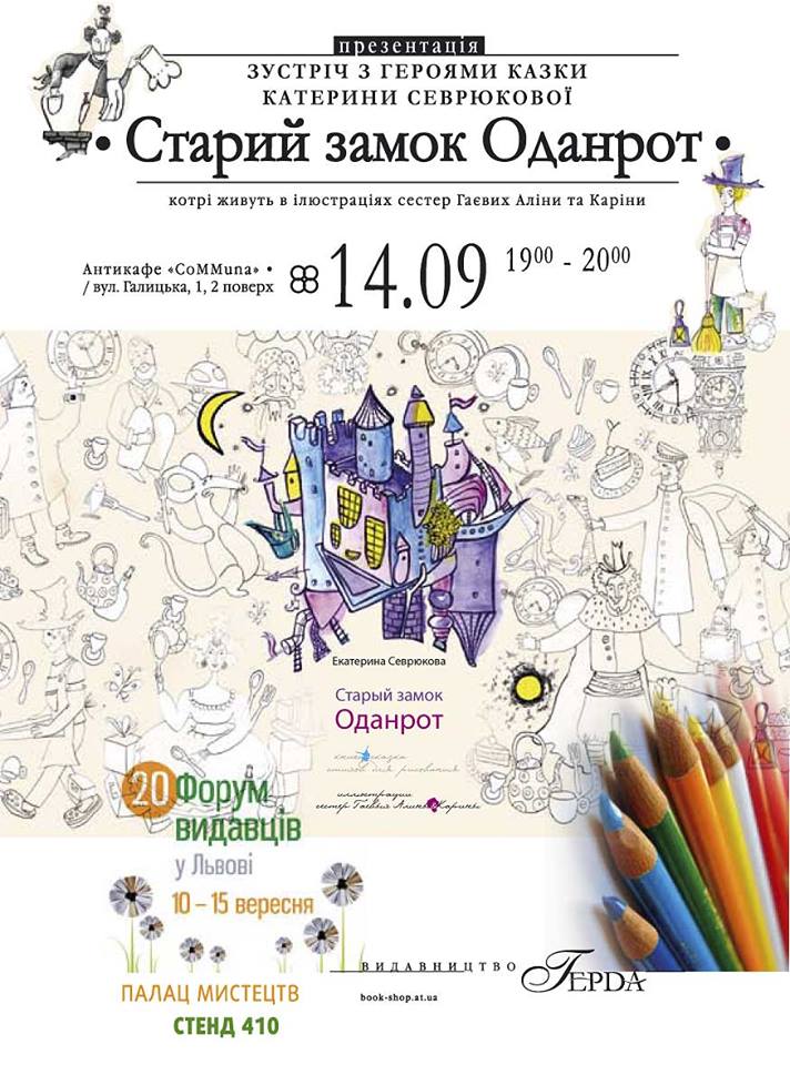 Зустріч з героями казки Катерини Севрюкової "Старий замок Оданрот" які живуть в ілюстраціях сестер Гаєвих Аліни та Каріни.: