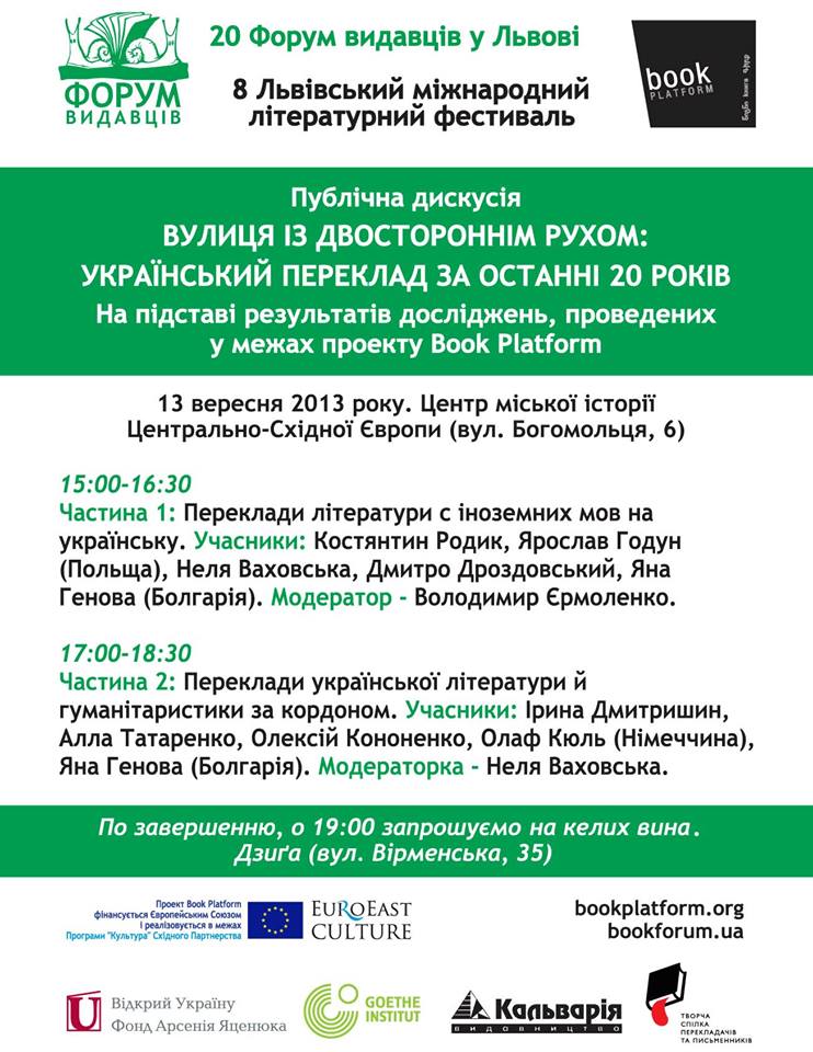 ПУБЛІЧНА ДИСКУСІЯ «ВУЛИЦЯ ІЗ ДВОСТОРОННІМ РУХОМ: УКРАЇНСЬКИЙ ПЕРЕКЛАД ЗА ОСТАННІ 20 РОКІВ»