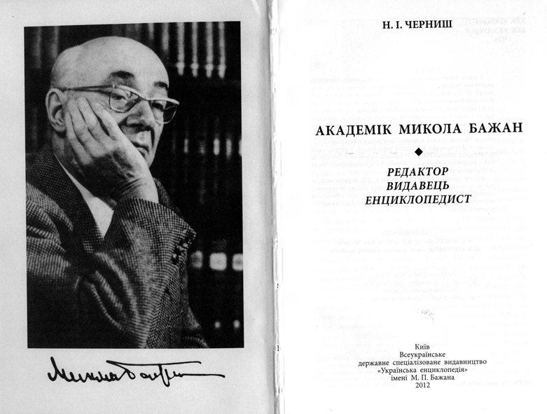 Черниш Н. І. АКАДЕМІК МИКОЛА БАЖАН Редактор. Видавець. Енциклопедист – Київ. Всеукраїнське не спеціалізоване видавництво «Українська енциклопедія» імені М. П. Бажана, 2012 р.