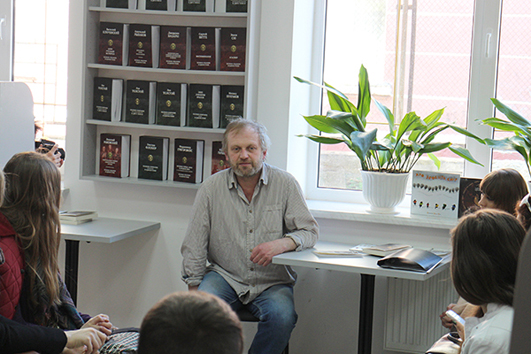 Автор низки багатьох прозових творів ділився із гостями книгарні міркуваннями щодо сутності і призначення художньої літератури у наш час та в історичному контексті, ролі письменника у сучасному суспільстві.