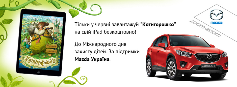 До Всесвітнього Дня захисту дітей видавництво «KievSeaPirates» при підтримці компанії Mazda Україназробили першу українськуінтерактивну казку «Котигорошко» безкоштовною.