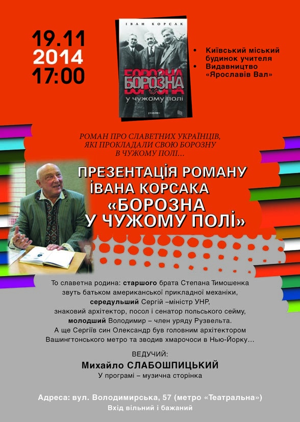 Презентація нової книги відомого українського письменника-сучасника Івана Корсака – роману «Борозна у чужому полі»