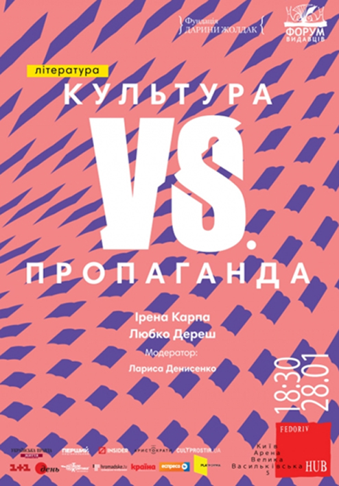 28 січня відбудеться перша дискусія між Іреною Карпою та Любком Дерешем тематика якої пропаганда в літературі, модератор зустрічі Лариса Денисенко.