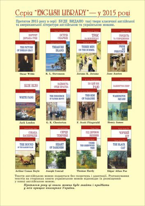 Для тих, хто хто хоче постійно, достатньо легко і доступно вдосконалювати англійську, видавництво "Знання" підготувало цілу бібліотечку, яка дає змогу закріпити свої знання, прочитавши оригінальні тексти класиків англійської, американської літератури, до того ж маючи змогу порівнювати із українським перекладом. Вийдуть для цього і методичні посібники із вправами.