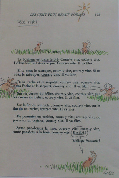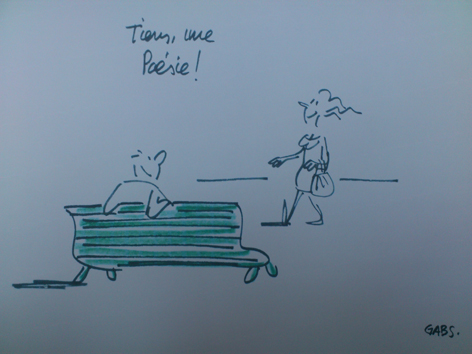 Веселі і романтичні, зухвалі та іронічні, виконані будь-чим, що потрапило автору під руку і будь-якого кольору, ці картинки викликають море симпатії та позитивних емоцій. Не уникнули долі бути потрактованими Габсом навіть твори класиків – Ронсара, Помпіду, Елюара, Верлена і Рембо. Але тільки поетичні збірки, бо на відміну від романів, читання яких займає кілька днів або тижнів, поезію можна читати де завгодно: на зупинці чи очікуючи на прийом стоматолога і витратити на це тільки той вільний час, який є, достатньо одного-двох віршів. Як сказав Габс поезія – це невеликий шматок щастя відразу, який не вимагає багато часу.