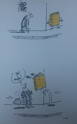 Завжди ставилась неприязно до тих, хто нищить книги і навіть підкреслення чи пташка на полях, особливо кульковою ручкою, викликали у моїй душі хвилю негативу. Але це було до того часу, поки я не потрапила на зустріч з французьким художником-карикатуристом мсьє Габсом (Gabs). Уявляєте, ці витончені французи навіть книги уміють псувати елегантно.