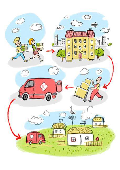 Основна хвиля збору триватиме з 2 по 17 квітня. Доставку зібраних книг до сільських бібліотек бере на себе компанія «Нова Пошта», яка повністю забезпечує логістику цього проекту. Кур’єри компанії доставлять книги в більш, ніж 200 сільських бібліотек по всій Україні. Результати акції буде презентовано під час V Міжнародного фестивалю «Книжковий Арсенал» (Київ) 22-26 квітня.