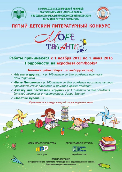 Конкурс дитячої літературної творчості «Море талантів» входить до числа основних заходів Одеського міжнародного Корнійчуковського фестивалю дитячої літератури, який четвертий рік проходить у рамках Міжнародної книжкової виставки-ярмарку «Зеленая волна».