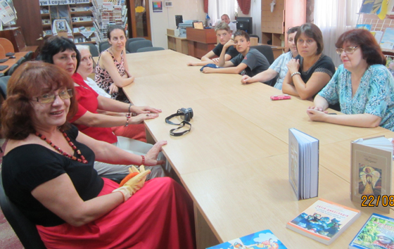 Напередодні Дня Незалежності України завітала пані Ольга до гостинної оселі Дніпропетровської обласної бібліотеки для молоді ім. М. Свєтлова, де її радо зустріли наші фахівці (маю можливість писати про бібліотеку «наша», бо вже багато років секція «Джерело» підтримує дружні стосунки з «Молодіжкою»). Сюрпризом для гості стала пропозиція провести й віртуальну зустріч – по скайпу – з нашими колегами з Одеської обласної бібліотеки для юнацтва.