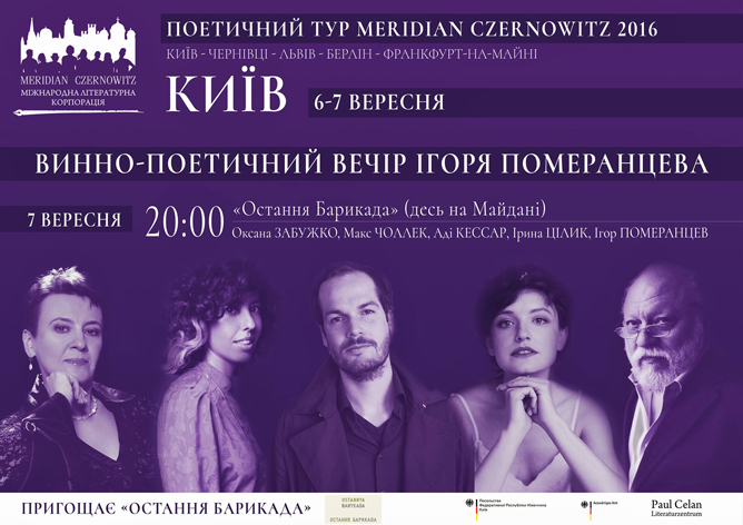 У рамках туру Meridian Czernowitz в Останній Барикаді відбудеться Винно-поетичний вечір письменника Ігоря Померанцева (Україна, Росія, Великобританія).