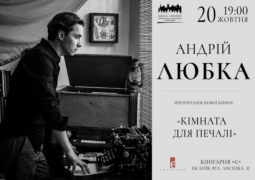 У четвер, 20 жовтня о 19:00 у книгарні Є (м. Київ, вул. Лисенка, 3) відбудеться презентація нової прозової збірки Андрія Любки «Кімната для печалі». Вхід вільний.