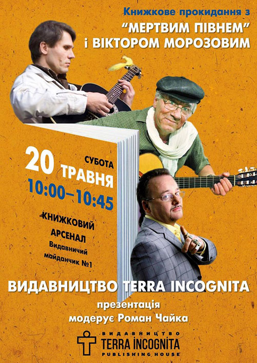 «Видавництво Terra Incognita» — запрошує на «Книжкове прокидання з „Мертвим Півнем” та Віктором Морозовим», що відбудеться у суботу 20 травня о 10:00 на Книжковому Арсеналі в Києві.