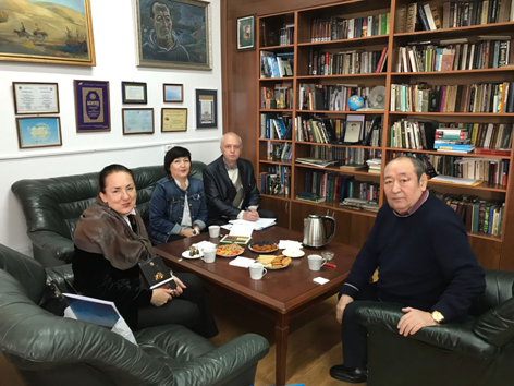 Також прекрасна творча зустріч у нас відбулася в Інституті літератури та мистецтва імені Мухтара Ауезова Національної Академії наук Республіки Казахстан. Тож дякуємо директорові Інституту, члену-кореспонденту НАН РК, доктору філологічних наук, письменнику Уаліхану Каліжанову та його колезі – співробітниці Інституту Світлані Ананьєвій, яка готує публікації і на українську тематику. Тут нам подарували багато чудових книжок, які ми із задоволенням привезли додому.