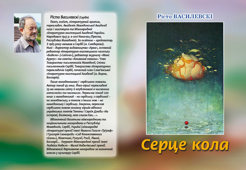 Міжнародна літературно-мистецька Академія України та знане чернігівське видавництво «Десна Поліграф» надрукували збірку віршів видатного сербського та македонського поета Рісто Василевскі «Серце кола». З сербської мови книгу переклали: Сергій Дзюба та Олена Дзюба-Погребняк (перекладачі-упорядники, редактори і керівники цього проекту), Анастасія Сирота, Анастасія Гойса, Дарія Соколова, Яна Сергатюк, Юлія Шаповал та Марина Москаленко. Пропонуємо вашій увазі відгук про цю книжку українського письменника, перекладача, критика, президента Міжнародної літературно-мистецької Академії України Сергія Дзюби.