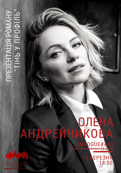 У середу, 13 березня, в Одесі відбудеться презентація нового роману письменниціОлени Андрейчикової «Тени в профиль», який побачив світ у видавництві MeridianCzernowitz.