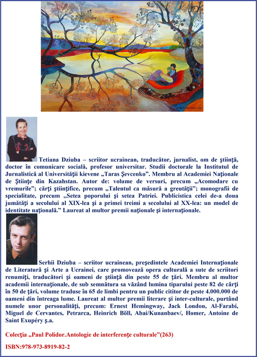 Презентуючи вам румунською мовою творчість Тетяни та Сергія Дзюби, маю впевненість, що у їхніх поетичних рядках ви знайдете неповторну мелодику, оригінальний авторський колорит, з якого, мов спраглий із чистого джерела, нап’єтеся цілющого нектару одухотвореної української поезії, милуючись вишуканими, ліричними образами, відчуттями й асоціаціями. А вихід у світ цього видання сприятиме взаємному зміцненню культурних румунсько-українських стосунків.