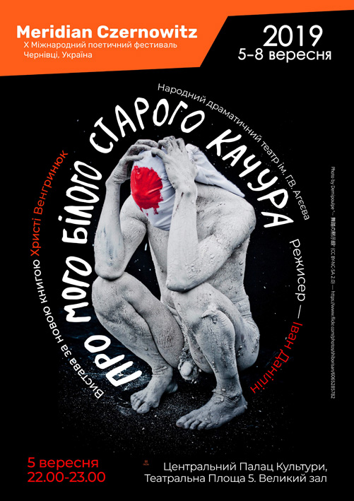 У рамках ювілейного Х Міжнародного поетичного фестивалю MERIDIAN CZERNOWITZ відбудеться вистава Народного драматичного театру ім. Г. В. Агеєваза новою книжкою чернівецької письменниці й художниці Христі Венгринюк «Про мого білого старого качура». Захід пройде у четвер, 5 вересня о 22:00 у Центральному палаці культури (пл. Театральна, 5, 3-й поверх). Вхід вільний.