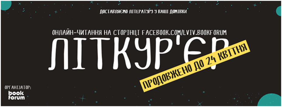 Онлайнпроєкт «Літкур’єр: читання уголос» від BookForum допоможе усім почуватися причетними і бути присутніми – без порушення правил карантину! – у реальному часі у режимі трансляцій на найсправжніших масових заходах – літературних читаннях з найвідомішими українськими авторами та авторками.