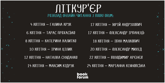 Проєкт "Літкур'єр: онлайн-читання уголос від BookForum" продовжено. Хто читатиме у квітні?