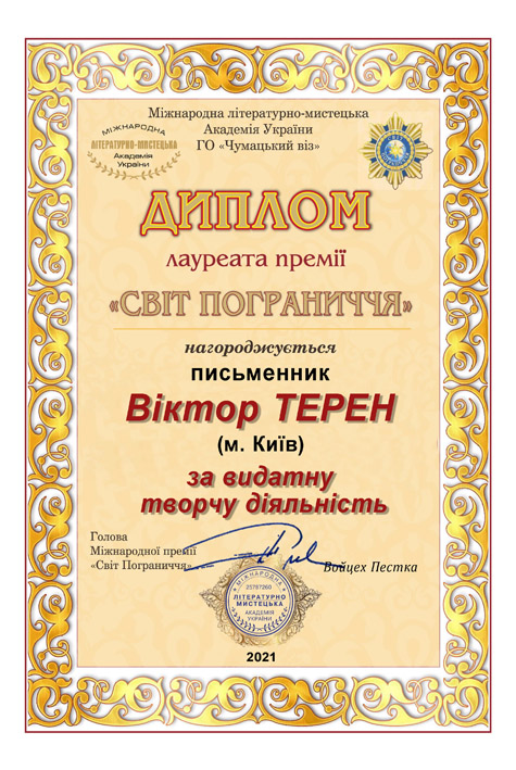 1. Письменник Віктор Терен (м. Київ) – за видатну творчу діяльність;