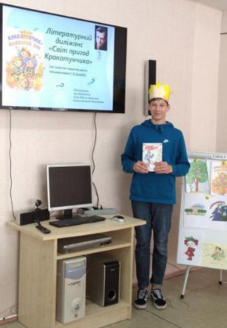 Літературний диліжанс «Світ пригод Кракатунчика» за першим диво-романом про кленового бога та його друзів («Кракатунчик – кленовий бог») популярної нині казкової трилогії «Душа на обличчі» відомого письменника Сергія Дзюби відбувся тут серед учнів 8-Б класу (класний керівник – Ю. В. Казьмірова). А підготувала та провела це яскраве свято завідувач шкільної бібліотеки Наталія Білюк. Учні завчасно прочитали роман «Кракатунчик – кленовий бог», намалювали ілюстрації, написали відгуки та висловлювали своє враження про прочитану книгу.