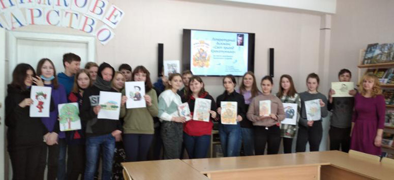 Літературний «вояж» розігрувався у формі мандрів з учнями 4-В класу (класний керівник В. М. Павленко). Діти також прочитали книгу славетного італійця, намалювали ілюстрації та написали відгуки. Тож п’ятнадцять учнів захоплююче висловили свої емоції, думки і враження про улюблену казку. Подорож складалася з п’ятнадцяти станцій, на кожній з яких учні відповідали на запитання та знайомилися з героями казок. Змагалися тут три команди. А перемогла дружна команда № 1. Наразі її кращі читачі – Станіслав Баштовий, Христина Калекуст та Поліна Симончук – одержали в подарунок чарівні книжки письменника Сергія Дзюби.