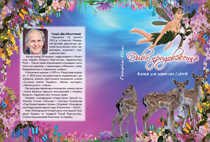 Генріх Дік. Диво продовження : Казки для дорослих і дітей / З німецької мови переклали Наталія Писаренко та Сергій Дзюба; кольорові ілюстрації митця Валентина Качурівського. – Київ-Чернігів: Міжнародна літературно-мистецька Академія України, Чернігів: Видавництво «Десна Поліграф».