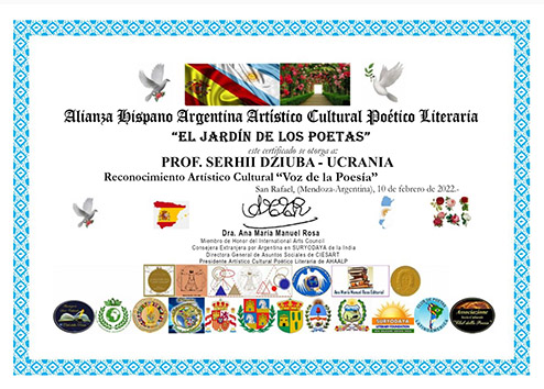 Так, свої співчуття та підтримку українському народу висловила відома міжнародна діячка, президент Міжнародної літературно-мистецької Академії Аргентини Dr. Ana Maria Manuel Rosa. Також вона нагородила престижною міжнародною літературною премією Аргентини «Голос поезії» знамените творче подружжя з Чернігова. Пані президент відзначила, що українці Тетяна та Сергій Дзюби достойно представляють у світі свою волелюбну та мужню державу. Й саме їхня книжка віршів «Голоси двох поетів», котра блискуче, успішно та резонансно вийшла в Іспанії і Болівії, іспанською й українською мовами, – це приклад високодуховної та вишуканої літератури, яка чарівно популяризує загальнолюдські цінності: здоров’я, любов, добро, щастя, мир.