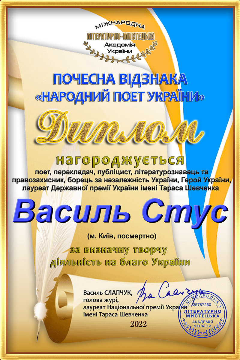 Видатні поети Василь Стус і Микола Вінграновський посмертно нагороджені Почесною відзнакою «Народний поет України» за 2022 рік