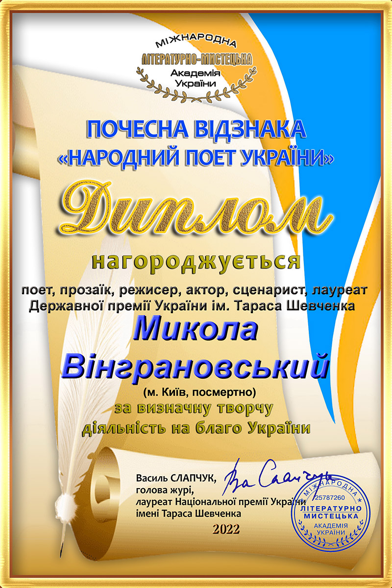 Нагороджені отримують диплом і орден Почесної відзнаки «Народний поет України».
