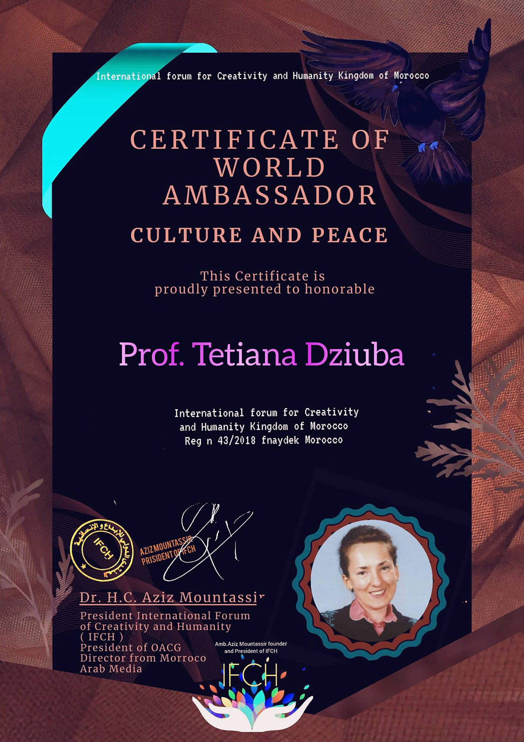 Тож нещодавно їх знову нагородили – нині Сергій і Тетяна стали Послами культури в Марокко. Відоме подружжя з Чернігова відзначене за видатну творчу, міжнародну, громадську, подвижницьку та благодійну діяльність в усьому світі. Почесні нагороди українцям вручила Принцеса Нігерії, письменниця Ловелін Ейо.