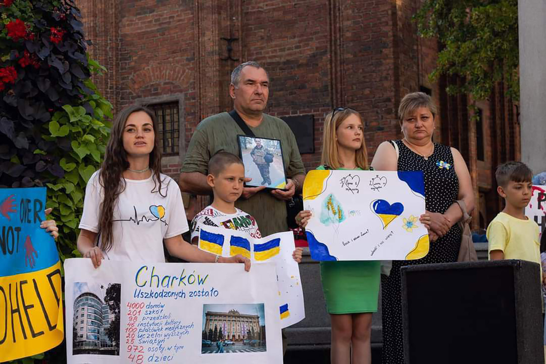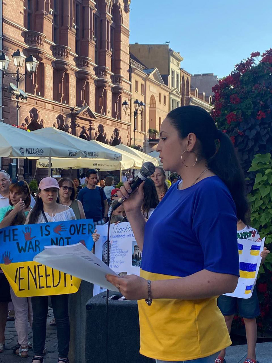 Війна триває, геноцид та знищення українців продовжується, гинуть герої, прекрасні люди, батьки, брати, чоловіки та діти. Вшановуючи пам’ять про полеглих, про наші колись прекрасні, а нині вщент зруйновані міста, учасники заходу прийшли із фотографіями захисників, плакатами зі світлинами, що документують звірства та руйнації.