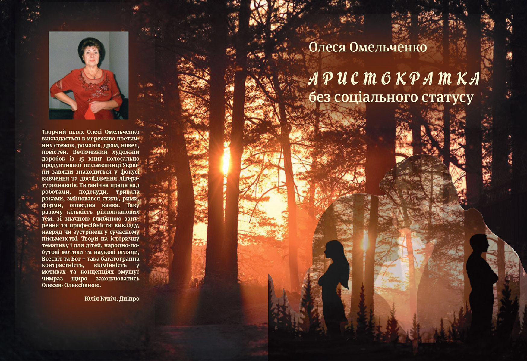 Дотепер авторка з Дніпра Олеся Омельченко була відома як поетка, драматургиня, дитяча письменниця. Аж зараз її творчий доробок поповнився новаторською прозою – повістю «Аристократка без соціального статусу», у якій утверджується велич справжнього почуття Любові, чистого і безкорисливого – символом самого життя.