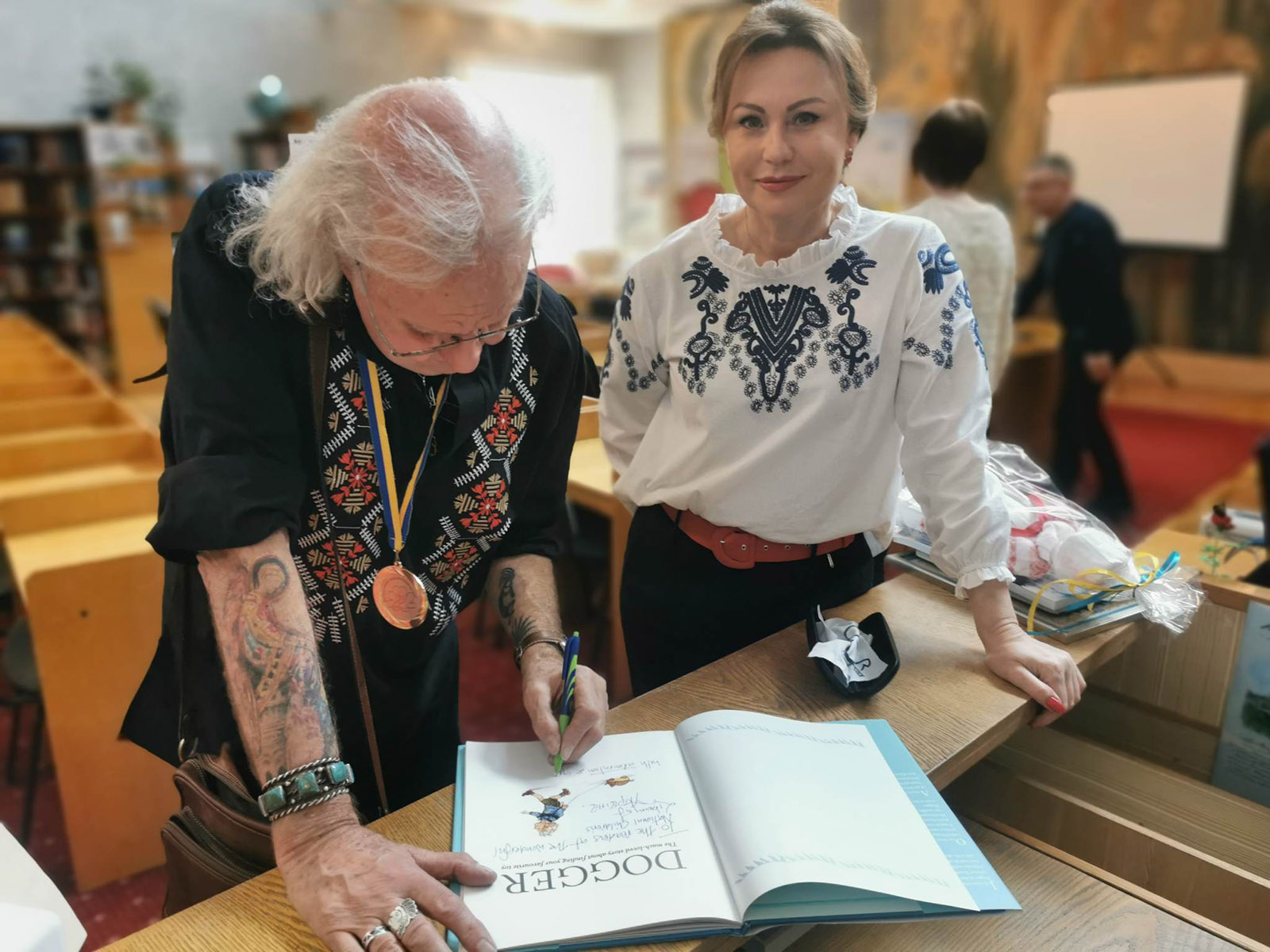 Напередодні заходу до бібліотеки приїхали книги. 555 книжок. Сказати, що це справжній скарб, – не сказати нічого. Що тексти, що ілюстрації, що папір і дизайн видань…. В урочистій події передачі колекції 17 березня, крім Рейчел і Еда, взяли участь Сергій Коровайний, український фотограф, який фотографував захід та локації бібліотеки для «The Guardian», Даниїл Мойсеєв, перекладач, Дамір Саголі, фотограф та директор фундації Warm, Даніс Тановіч, боснійський режисер, Ремі Ордан, репортер французької газети Le Monde, Луе Лагранд, координаторка проекту «Бібліотеки без кордонів Україна», Філліп Лобжуа, журналіст, газета «Уест-Франс», Франсуа Тома, фотограф французької газети Le Monde, Андріян Вотті, фотограф французького часопису «Уест-Франс». У ZOOMі всіх присутніх – гостей, дітей, бібліотекарів, журналістів – вітав перший заступник міністра культури та інформаційної політики України Ростислав Карандєєв. Виступали наші гості, генеральний директор Алла Гордієнко, дивилися відеосюжети, спілкувалися, Ед у Національному проекті «Україна читає дітям» читав нашим читачам мамину найвідомішу книгу «Доггер» – програма заходу була насиченою і цікавою. До речі, прообразом героя книжки хлопчика Дейва у «Доггері» є сам Ед у дитинстві, а його плюшевий цуцик (м’яка іграшка) з книжки вже понад 50 років живе з ним під його диваном у коробочці.