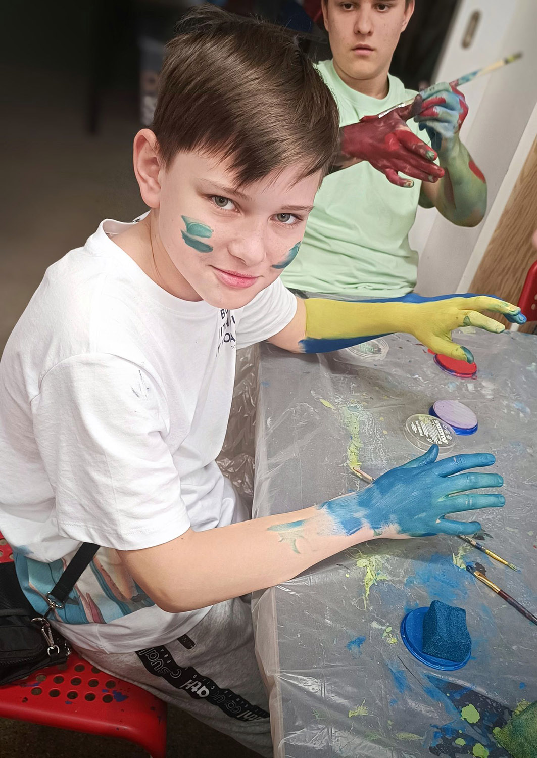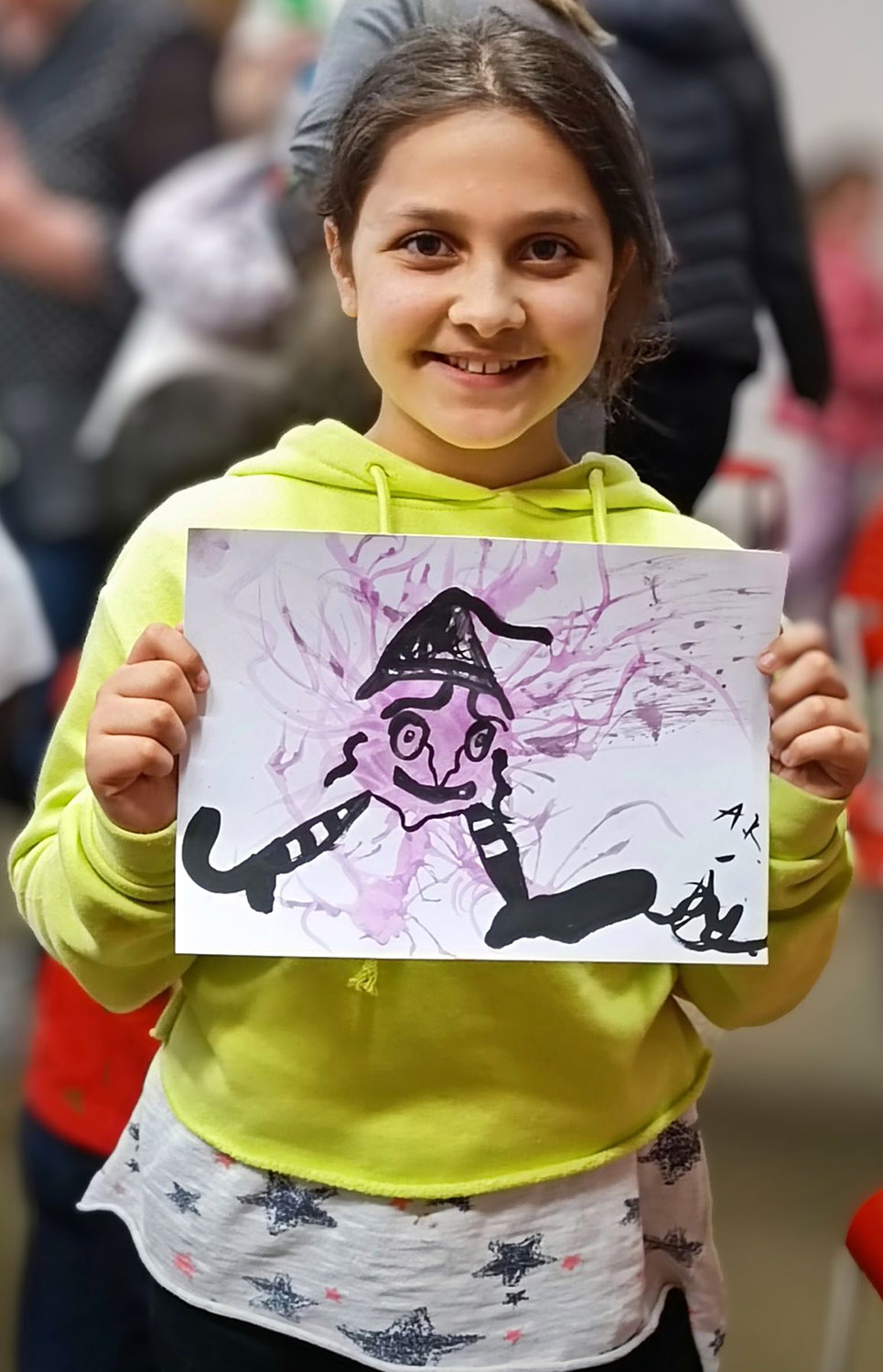 На фото: Олена Лань веде авторські воркшопи для українських дітей-біженців та місцевих дітей.