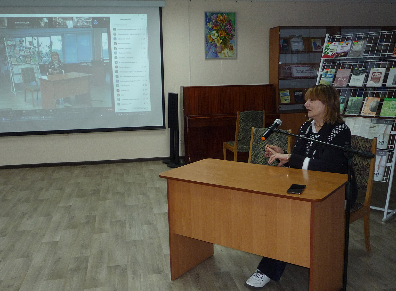 І ось вони зустрілися – автори з різних міст і їхні читачі. На екрані виникали обличчя, і читачі впізнавали: ось та, яка написала про цапа, який підняв на роги велосипед, ось авторка, яка створила майже детектив про самотню пасажирку, яку грабували в темному переході перону, а ця жіночка є автором незвичайної історії, як маленька дівчинка ночувала в лісі, а ця гарна пані з блискучими чорними очима написала про мавпочку, яка завдавала чимало клопоту.
