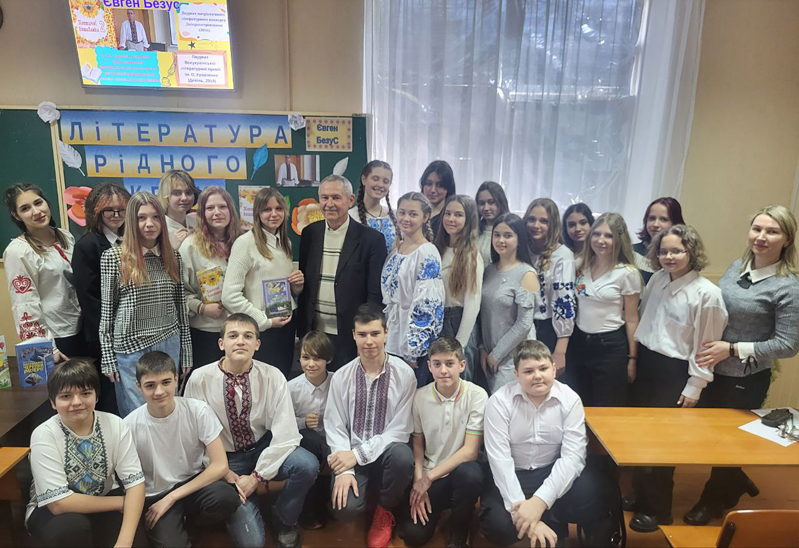 В останній день зими пройшла творча зустріч Євгена Безуса з юними читачами середньої загальноосвітньої школи № 84. Пан Євген захопливо спілкувався з авдиторією, відповідав на запитання, розповідав про свій життєвий і творчий шлях, а також поділився планами на майбутнє. На добру згадку про зустріч із здобувачами освіти та вчителями Євген Федорович подарував свої збірки та книжки з автографом.