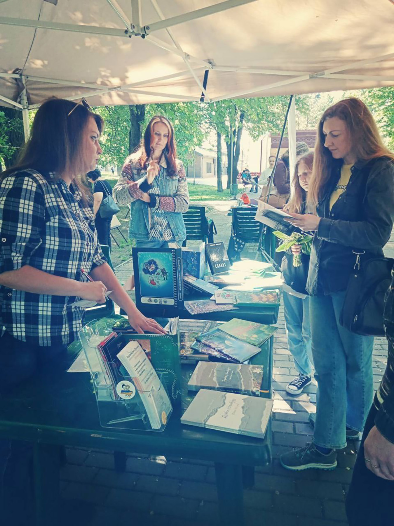 «Нарешті кам’янчани, гуляючи у центральному міському парку, можуть познайомитися з талановитими земляками: подивитися їхні картини, рукоділля, послухати пісні та вірші, і, звісно ж, почитати свіженькі книжки! – радіють наші колежанки».