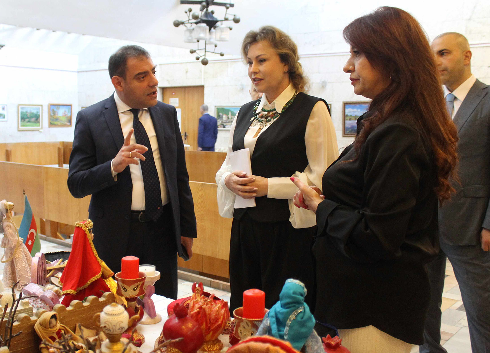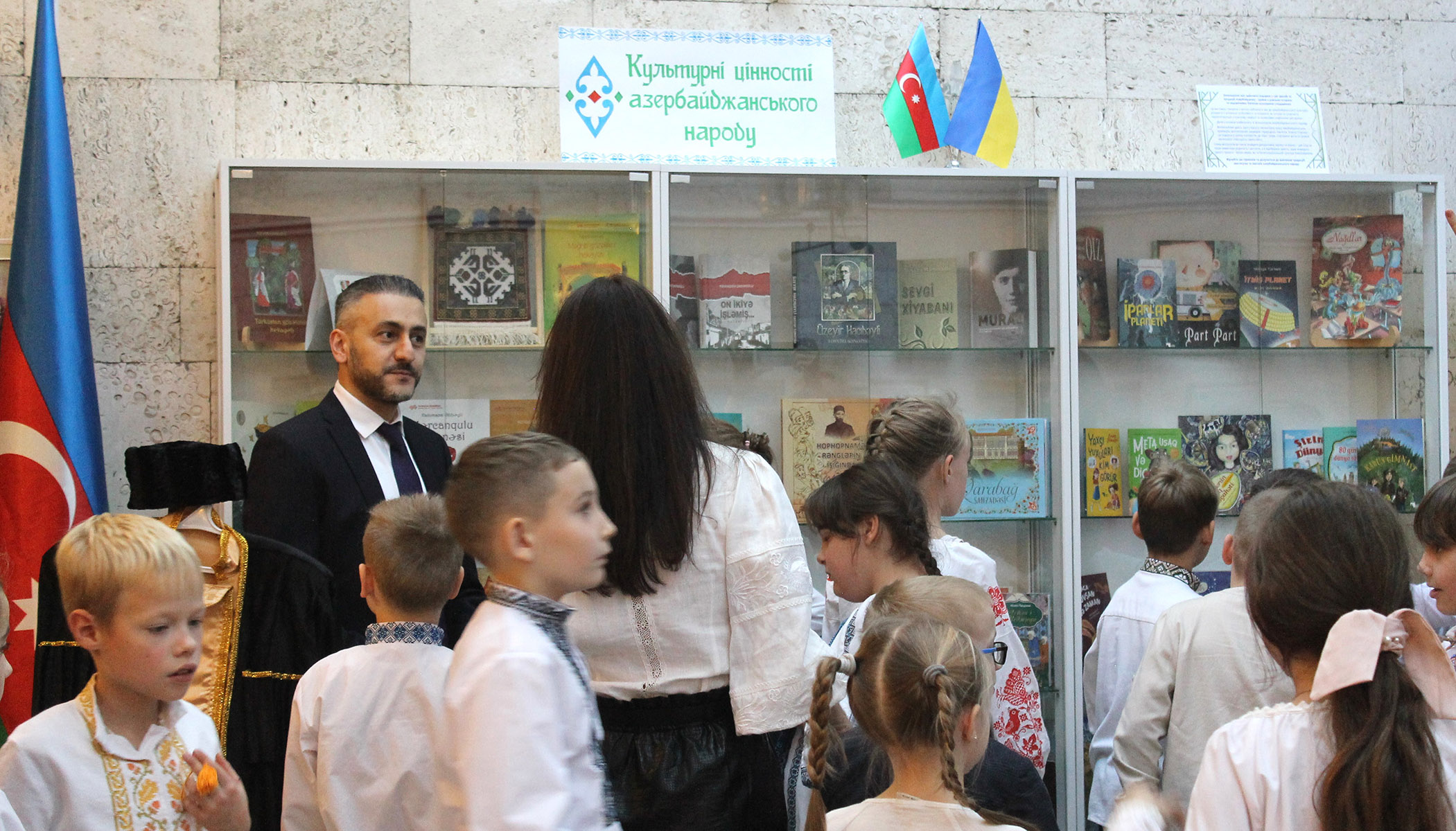 На другому поверсі бібліотеки дорослі й діти відвідали книжкову виставку «Культурні цінності азербайджанського народу», прикрашену предметами побуту. Виставка експонуватиметься в Національній бібліотеці України для дітей упродовж 10 днів. А також усі відвідувачі із захватом переглянули експозицію азербайджанських виробів декоративно-прикладного мистецтва, виготовлених народною майстринею Реною Сафаровою.