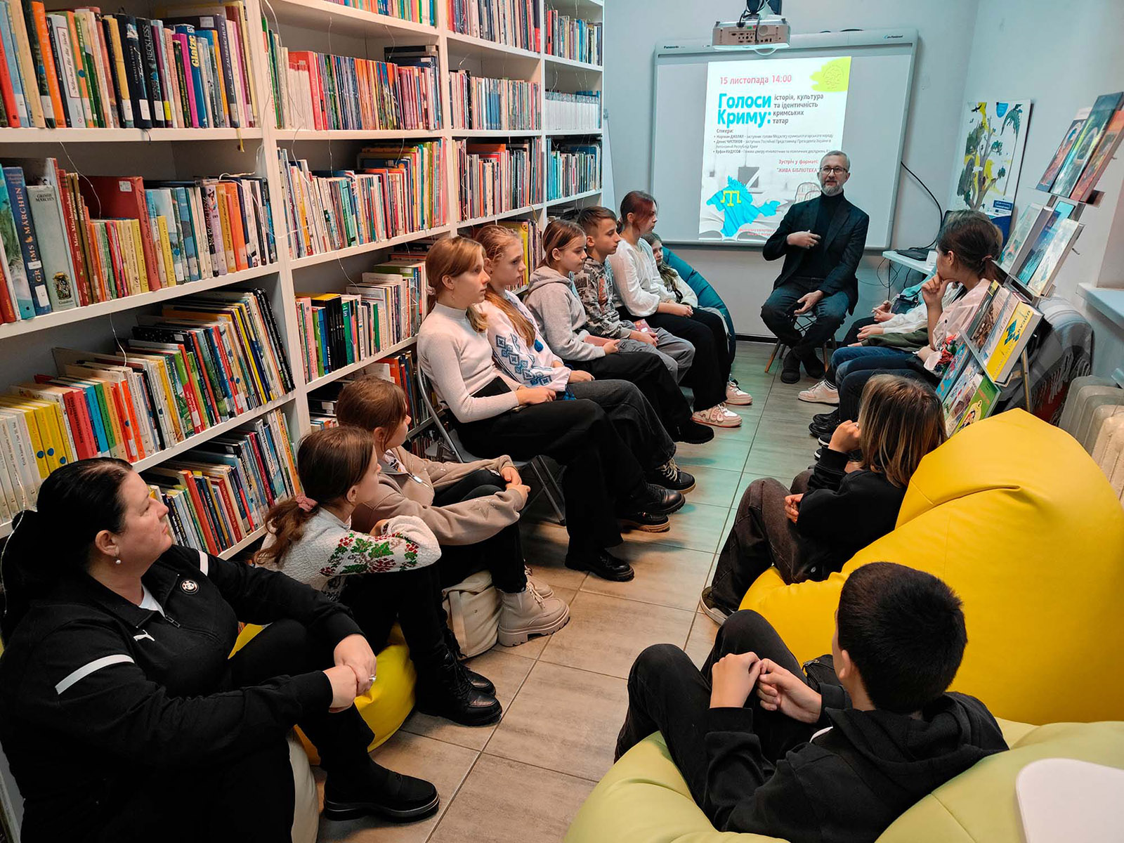 Напередодні Міжнародного дня толерантності, 15 листопада, у Національній бібліотеці України для дітей відбувся особливий захід – «Голоси Криму: історія, культура та ідентичність кримських татар». Формат події – «Жива бібліотека», де замість книг реальні люди ділилися своїми історіями. Учні 6-7 класів мали унікальну можливість безпосередньо поспілкуватися з видатними представниками кримськотатарської громади, почути про їхню культуру та історію, дізнатися про виклики сьогодення.
