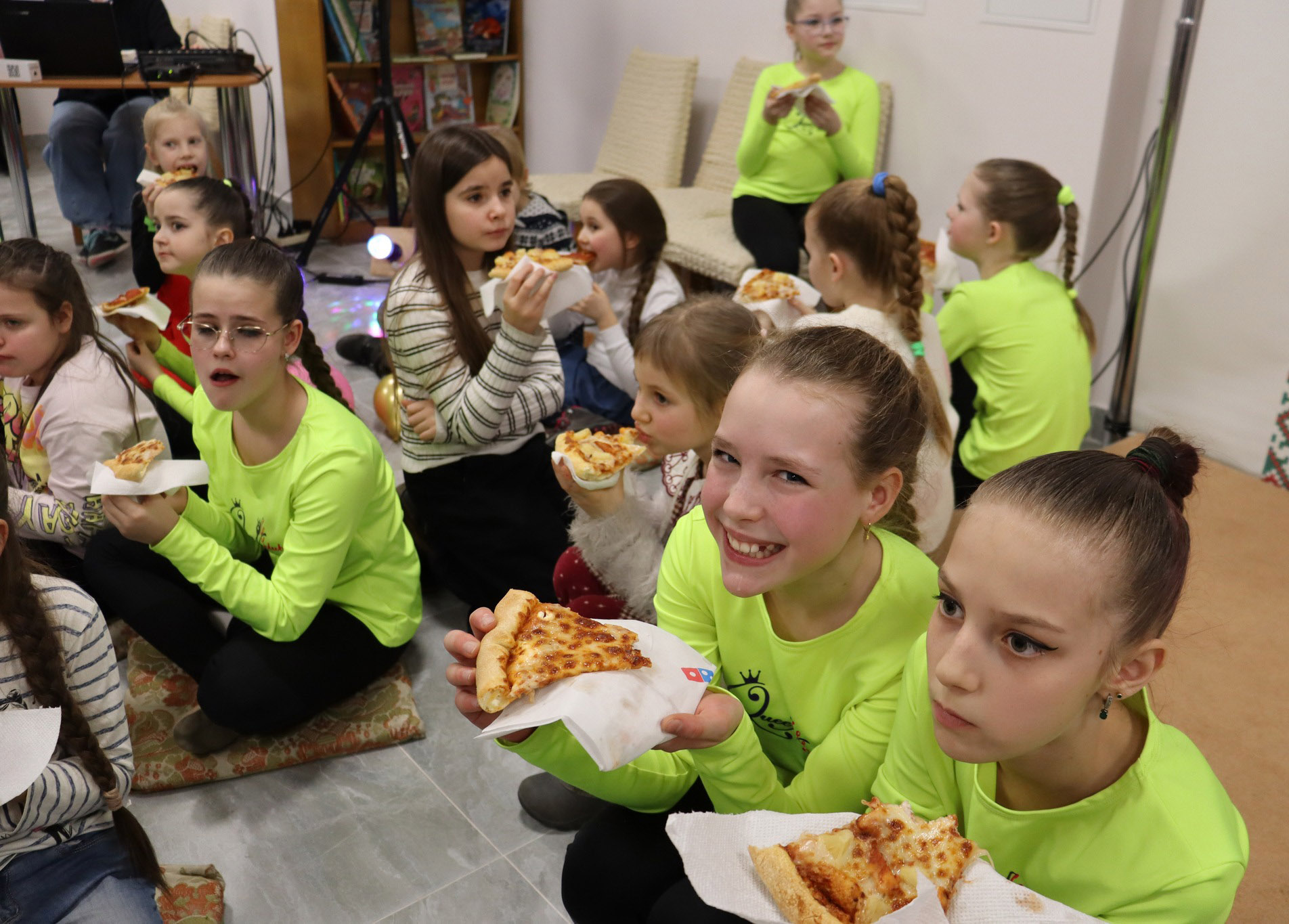 Завершилася вечірка пригощанням. Піццу для учасників «Сутінків» надала компанія ТОВ «ДОМІНОС ПІЦЦА ЮКРЕЙН». Бібліотекарі й читачі щиро вдячні керівництву компанії за смачний фінал цього свята читання!