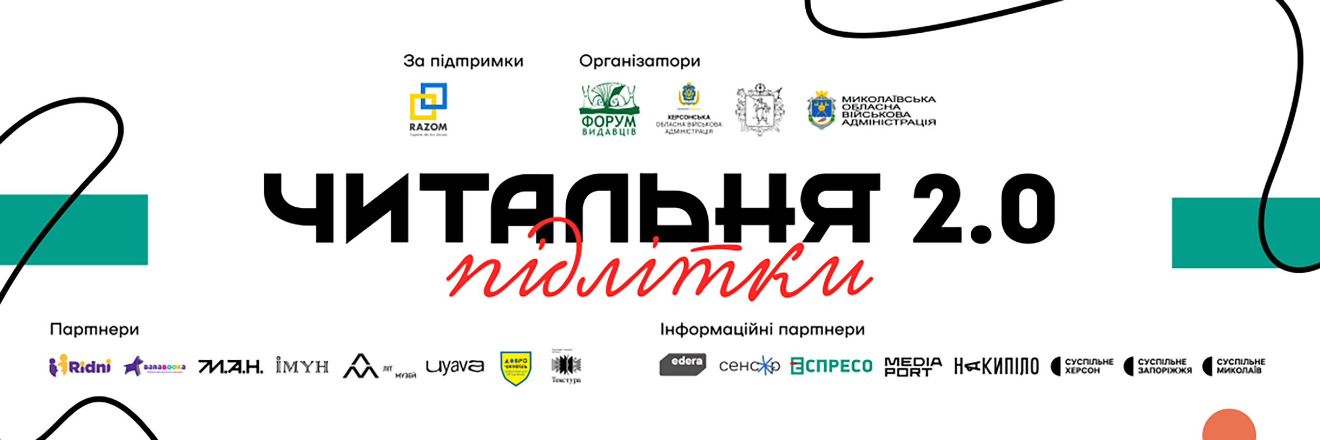 Партнери проєкту: Благодійний фонд «Рідні», Простір Української Дитячої Книги «BaraBooka», Лабораторія дитячого читання МАН, ГО «Ініціативна молодь Нью-Йорку», Харківський літмузей, Простір для підлітків та молоді «Уява», ГО «Доброчинець», програма з промоції читання «Текстура»