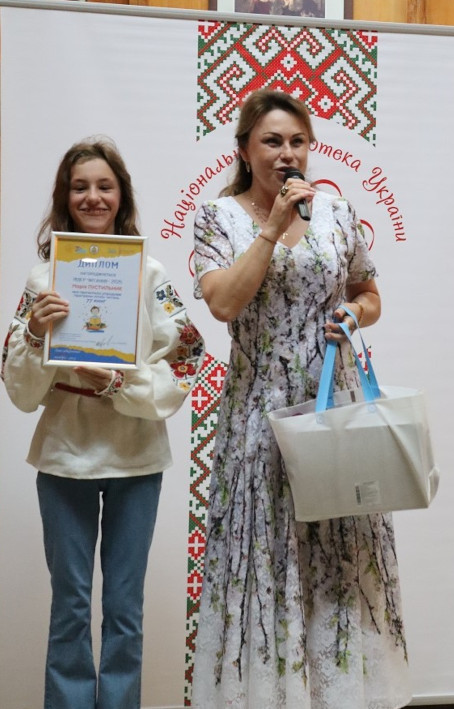 Пані Алла вручила нагороду переможниці Всеукраїнського конкурсу «Лідер читання-2025», якою цьогоріч стала наша віддана читачка Марійка Пустильник.