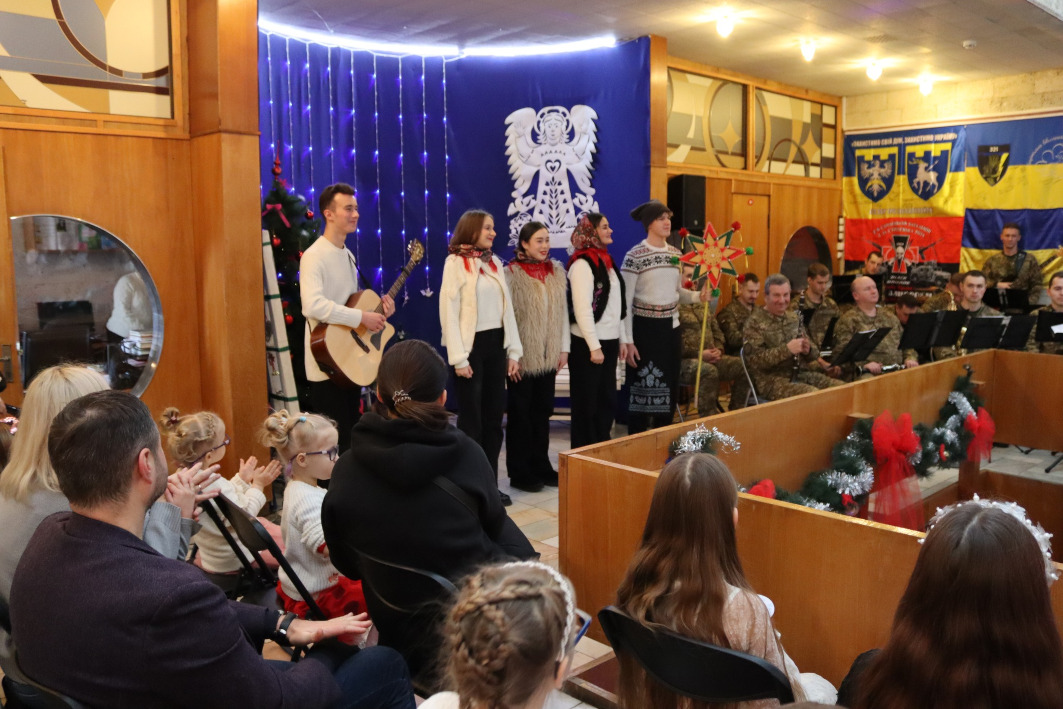Різдво в Україні неможливе без музики. Святковий концерт відвідувачам бібліотеки подарував оркестр військової частини 3030 25-ї бригади охорони громадського порядку ім. Князя Аскольда Національної гвардії України. Диригент – Василій Канчій.