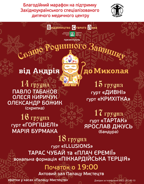 Усі заходи Благодійного марафону «Від Андрія до Миколая» – на підтримку онкохворих дітей із Західноукраїнського спеціалізованого дитячого медичного центру.