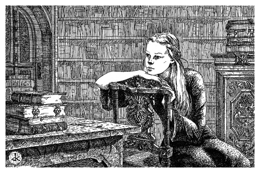 Можу показати вам власну ілюстрацію до наступного роману, де зображена його головна героїня. Можна спробувати вгадати, хто це, адже вона згадується в «Аеніль».